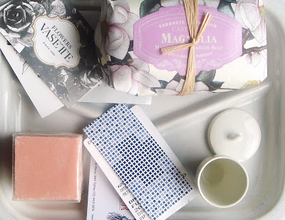 Soaps from Klein's perfumery & plate from Industria (acquired via a psychiatric hospital) Cards: Vassette florist, tram ticket, Hellenic Republic, The Commoner