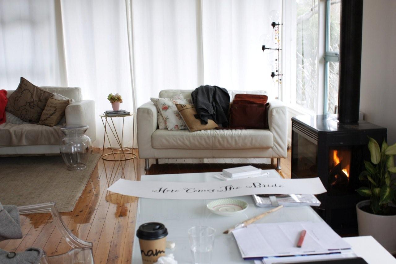 What a freezing, windy and wet weekend. Mr and I huddled up at home with our newly working fireplace (pic 5). We drank coffee, cooked toast, scratched together lunch and I spent most of Saturday afternoon making a chocolate tart while Mr was trying to finish off a uni assignment. On Sunday I spent the day drinking more coffee, eating left over chocolate tart and crafting together some custom orders (garlands galore, orange & gold heart art and finished off a hand painted wedding banner). Mr is still battling with that assignment.